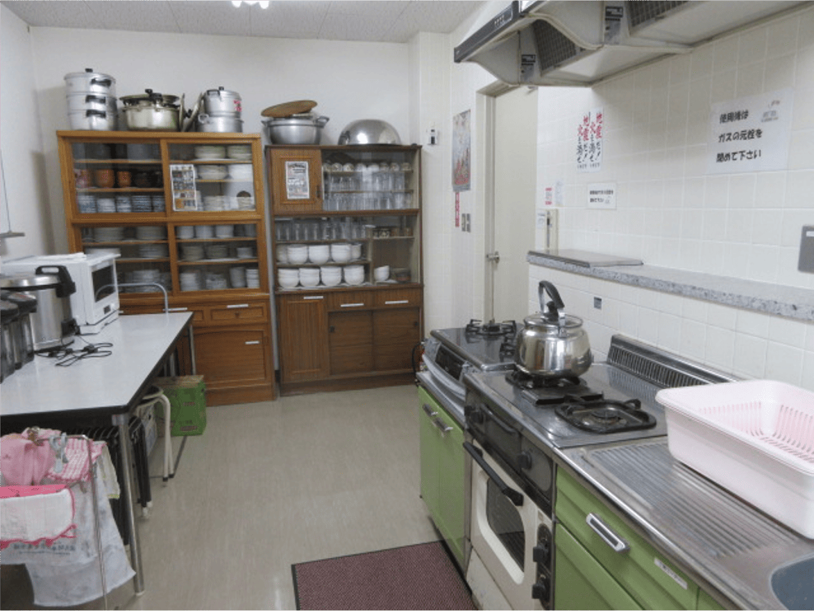 現在は、会議室・和室1・和室2・図書室・調理室の5つの部屋の貸し出しを行っています。2階までのエレベーターもあります。